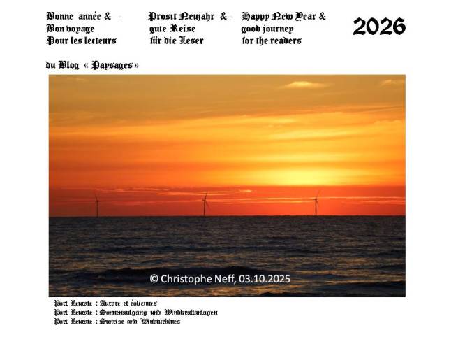 Bonne année 2026 – Prosit Neujahr 2026 – Happy New Year 2026 31. Dezember 202531. Dezember 2025 ~ cneffpaysages Teilen mit: Klicke, um auf X zu teilen (Wird in neuem Fenster geöffnet) X Klick, um auf Facebook zu teilen (Wird in neuem Fenster geöffnet) Facebook Gefällt mir Wird geladen … Ähnliche Beiträge Veröffentlicht von cneffpaysages Zeige alle Beiträge von cneffpaysages